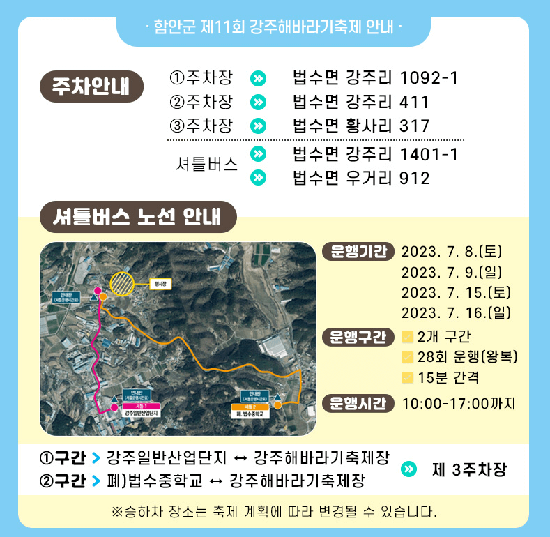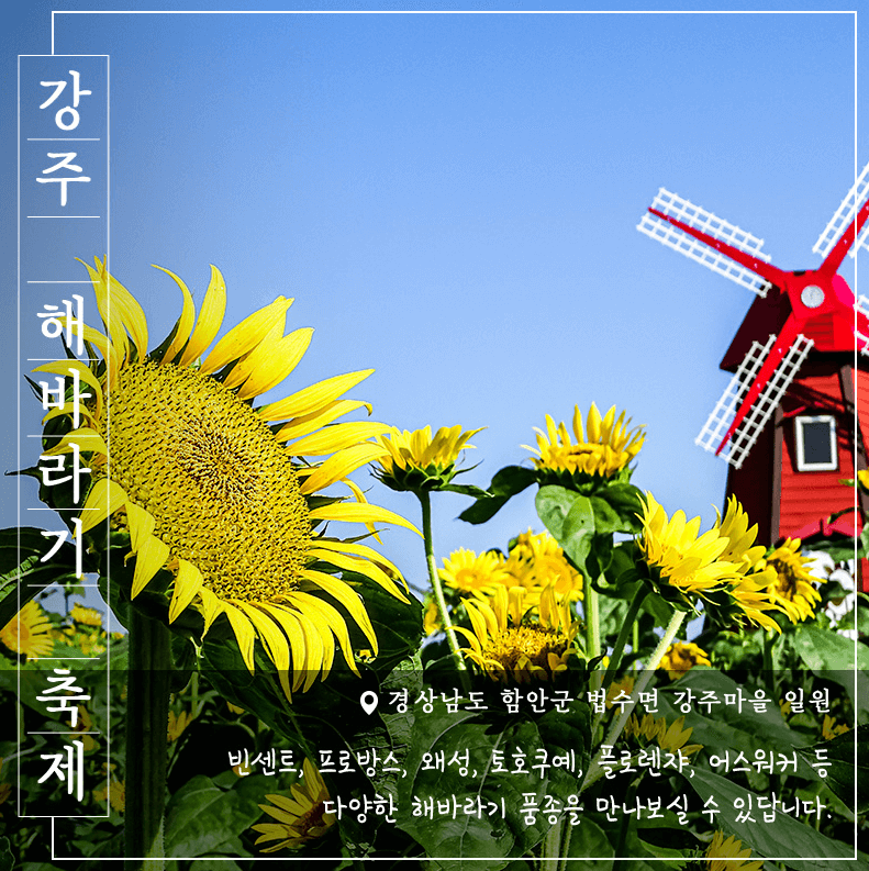 | 문의 | 강주해바라기 축제위원회 관리자 (055-580-4403~4406) |