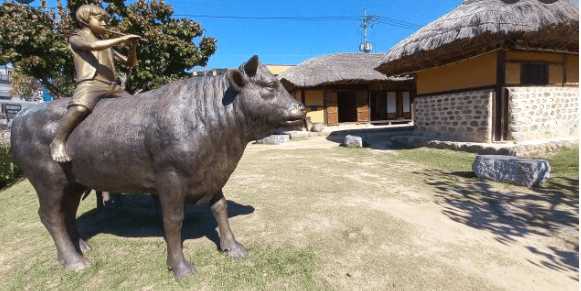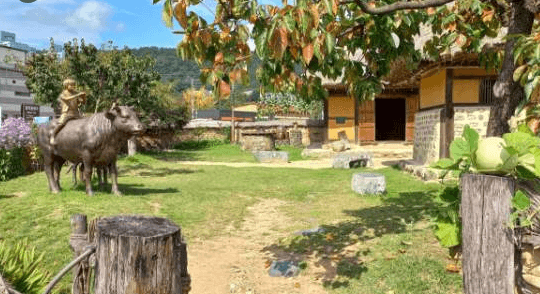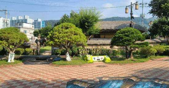 인형의 뒤에는 고향풍경의 벽화가 있고, 벤치의 가운데 정지용이 앉아 있으니 들어오는 사람들 마다 양 옆에 앉아서 기념촬영을 하는 명소가 되었다.