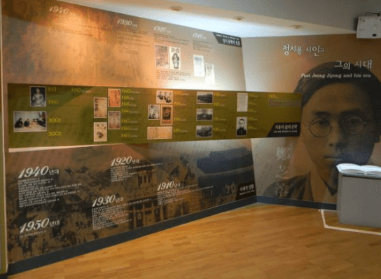 동선을 따라 좌측으로 이어진 벽면을 장식한 지용문학지도는 '한국현대시의 흐름과 정지용'이라는 주제를 가지고 1910년대부터 1950년대까지 현대시가 어떻게 변화하고 발전되었는가를 한눈에 볼 수 있으며, 그러한 시문학의 역사적 흐름 속에서 정지용 시인이 차지하는 비중을 알아볼 수 있다. 이후 1974년에 헐린 그의 생가가 있던 자리에 지어진 집에 조그만 청동의 표지판이 이곳이 그곳이었음을 조용히 알리던 때를 지나 그곳에 1996년도에 원래의 모습으로 그의 생가는 복원되었다. 그리고 10년 가까운 세월이 흐른 후 2005년 5월 그의 생애와 문학을 총 망라한 기념관이 세워지게 되어 그의 발자취와 생애, 문학을 한자리에서 돌아볼 수 있게 되었다. 그러므로 그곳에 가면 온전한 시인 정지용을 만나볼 수 있게 되었다.