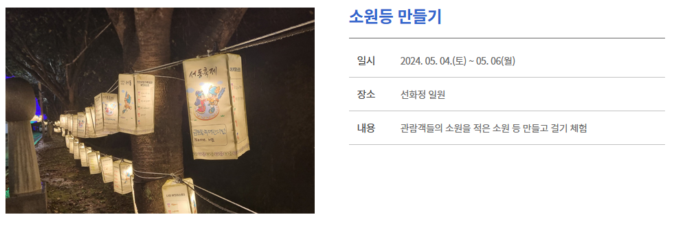 | 개최기간 | 2024년5월3일(금) ~ 5월6일(월) / 09:00 ~ 23:00 (4일간) |