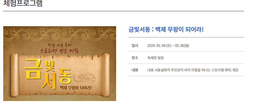 익산 서동축제 다양한 체험 프로그램 안내