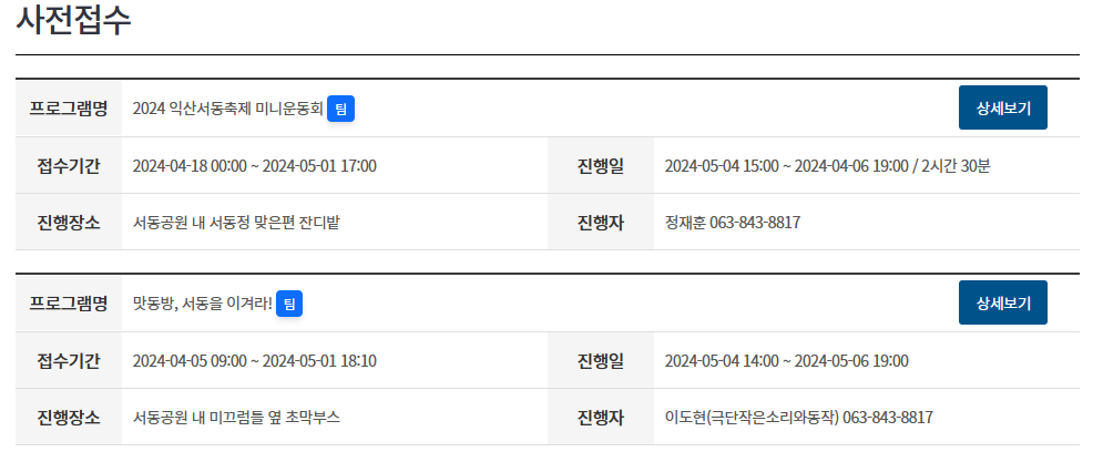 | 문의 | (재)익산문화재단 관리자 (063-843-8817) |