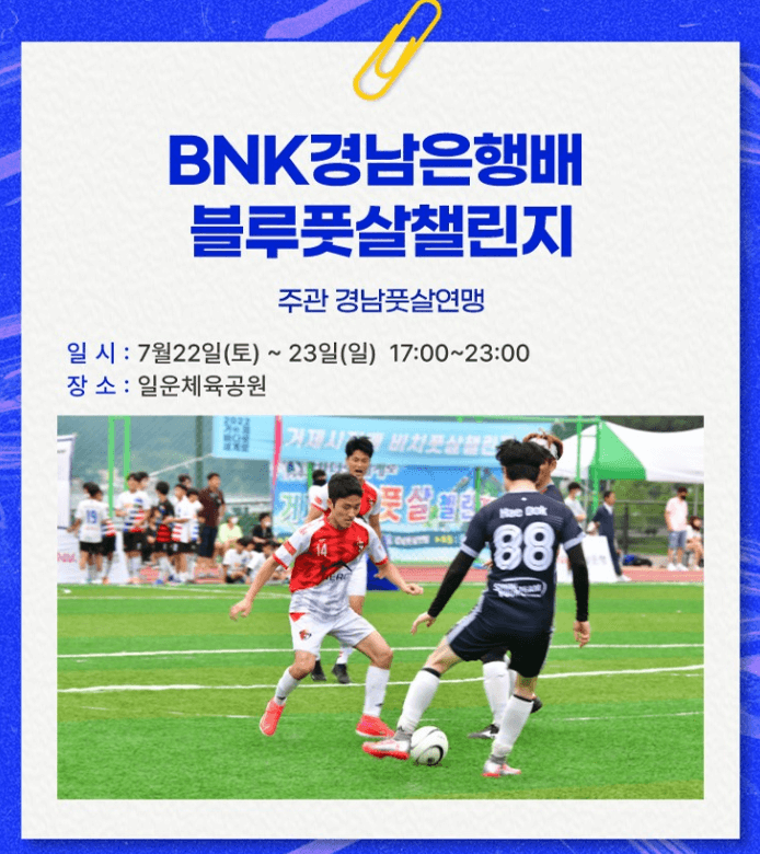 | 17:00 ~ 22:00 | ■ BNK경남은행배 블루풋살챌린지 |