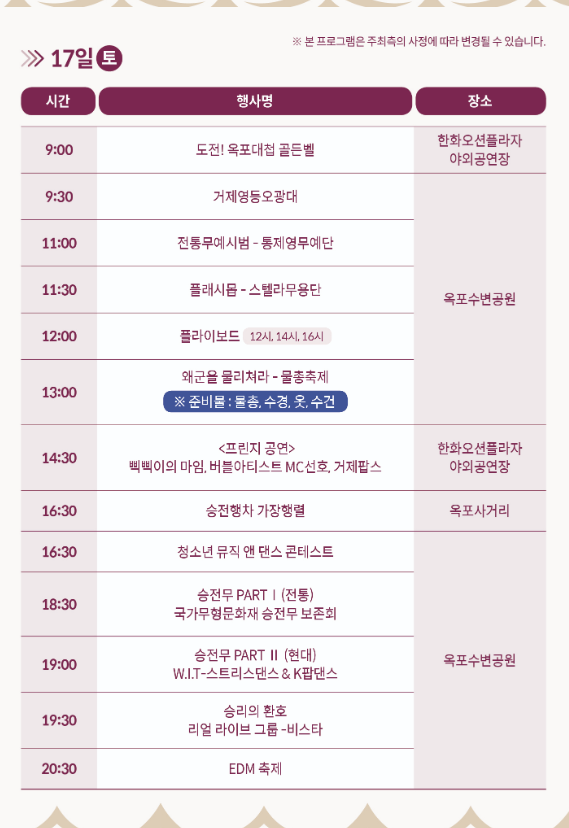 거제옥포대첩축제 행사 일정 안내