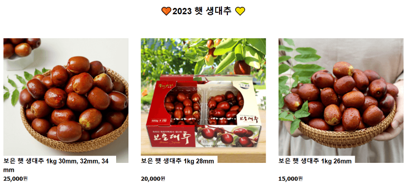이외에도 혈관질환 예방, 이뇨작용, 피부미용, 노화방지, 호흡기질환 예방, 면역력 강화, 소화기능 향상, 소염작용, 항암작용까지 다양한 효능이 있으니 이번 대추축제 기간에 꼭 구매해서 드셔보시기 바랍니다.